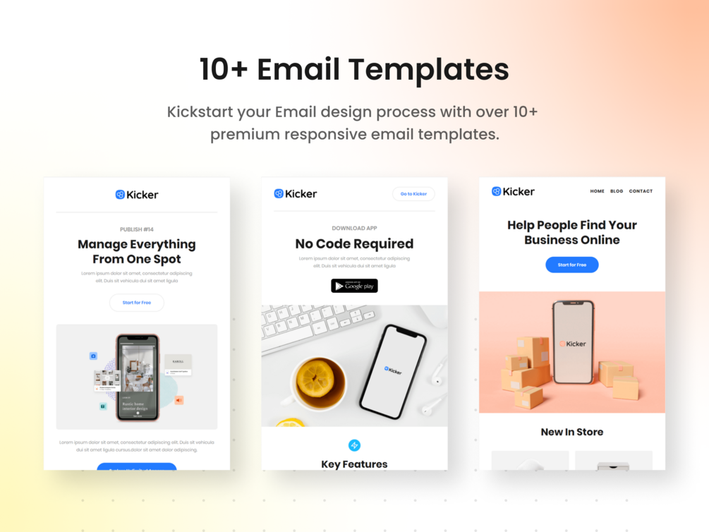 We Won’t stop and will definitely come with regular updates to provide new features. Grab Kicker now to quickly create a modern and professional email template for your business within minutes.